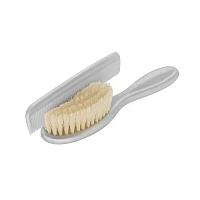 Practical set of comb and brush for daily baby care, Particularly gentle on sensitive scalp and fine baby hair, Hypoallergenic and antistatic Brush with natural bristles and comb with rounded tips, Relaxing and calming baby's scalp Ideal as a gift, Durable material made of recyclable polypropylene, Tested for chemical safety, Easy cleaning with warm soapy water, Brand quality Made in Germany Can be combined with matching accessories from Rotho Babydesign for good organisation at the changing table: Wash bowl with 2 compartments and water-repellent changing pad Contents: 1 x Rotho Babydesign TOP Comb and Brush, Dimensions: 15 x 4 x 2.7 cm, Material: Polypropylene Plastic, Colour: Stoney Grey, 20059 0286 01