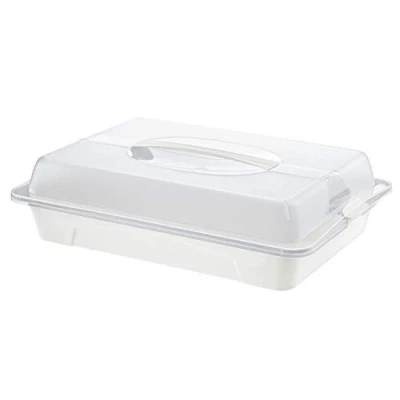 Comfort: large container for transport and storage of cupcakes, sandwiches, pastries etc - with comfortable carrying handle in the lid - with 2 large cooling pads designed for storing and transporting grilled sausages, meat, muffins and cakes Dimensions: party container with refrigeration, dimensions: 43.5 x 29.5 x 11 cm (L x W x H), interior dimensions: approx. 31.5 x 24 x 8.5 cm, colour: base, tray, locks and handle white, transparent hood, cooling pad blue Scope of supply: 1x party container Cool Lockable transport box Removable cooling pads in the base Material: Plastic
