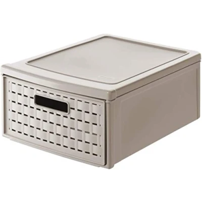 Rotho, Country, Drawer box 8.3 l in rattan look, Plastic (PP) BPA free, cappuccino, klein/8,3l (35,0 x 26,0 14,5 cm)