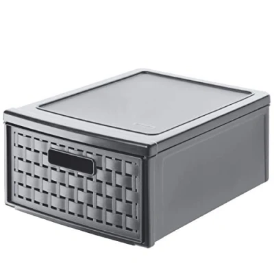 Rotho, Country, drawer box 8.3l with 1 in rattan look, Plastic (PP) BPA free, anthracite, klein/8,3l (35,0 x 26,0 14,5 cm)