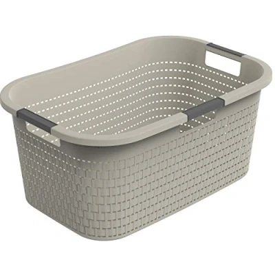 Carry: 830 g lightweight laundry basket – can also be carried with one hand thanks to 3 handles – no sharp spots/edges on the laundry basket – sturdy handles, no risk of breakage – handle pads for comfortable carrying Look: beige plastic laundry chest - elaborately processed rattan structure on each side - laundry box with ventilation holes on all four sides - stackable when not in use Ventilation: laundry bin with ventilation holes on all 4 sides for better air circulation – no unpleasant odours when laundry lasts longer – better hygiene Dimensions and material: Laundry basket (L x W x H) 58 x 38.9 x 25.1 cm – Volume 40 litres – Plastic (PP) – BPA free – Easy to clean Box contents: 1 x laundry basket 40 litres "Country" in rattan look in beige