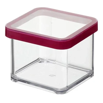 Convenience: Freshness boxes for storing food - Cleaning the plastic boxes in the dishwasher (upper basket) - Transparent storage boxes for multi-person households Closure: aroma-tight sealing of the individual plastic containers - longer shelf life of food - sealing ring in chic red - preserving aromas Designed for storing nuts, raisins, grated cheese, pine nuts, etc - No deformation or scratching of the storage boxes after cleaning in the dishwasher Scope of supply: 1 square storage box incl. lid - Capacity 0.5 l - Dimensions approx. 10 x 10 x 7.2 cm (LxWxH) - Lower part and lid transparent, sealing ring red - Made in Switzerland Capacity: 0,5l lid with silicone sealing ring Material: Plastic