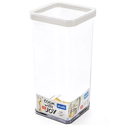 Rotho, Loft, square storage box 1.5l with lid and seal, Plastic (PP) BPA free, white/transparent, 1,5l (10,0 x 10,0 21,4 cm)