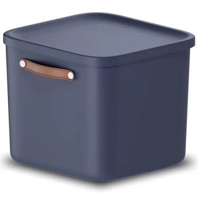 DESIGN: Large storage box with lid and handle - perfect for systematic storage of things in the children's room, bathroom, kitchen etc.! UNIVERSAL and MODULAR: Can be used individually or as a set - box available in four different sizes (12, 20, 25 and 40 litres) - safely stackable and timeless design - perfect for the living area! SPACE-SAVING and PRACTICAL: Stackable boxes - comfortable to carry thanks to carrying strap - made of easy-care and easy-to-clean plastic! MEASUREMENTS: 39.5 x 38,0 x 34,0 cm (LxWxH) capacity 40 litres - practical organiser box with lid and handle - available in various colours! SCOPE OF DELIVERY: 1x storage box 40 litres made of plastic with lid and carrying strap!