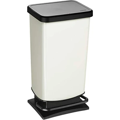 Comfort: plastic dustbin - keeps odours at bay - waste bin with step function - lid closes silently - stable stand due to rubber feet Optics: Waste bin made of high-quality plastic (PP) in stainless steel look - no rusting - no dents through use - separate inner ring conceals bin liner on the outside Hygiene: Easy cleaning of waste bin and lid - no escaping odours - no fingerprints thanks to high-quality plastic - BPA-free waste bin Dimensions: 35.3 x 29.5 x 67.6 cm (LxWxH) - Waste bin capacity: 40 litres - Also suitable as a simple waste bin delivery: 1 x waste bin white metallic with 40 l capacity