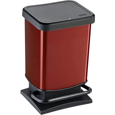 Rotho, Paso, Waste bin 20l with pedal and lid, Plastic (PP) BPA free, red metallic, (29,3 x 26,6 45,7 cm)
