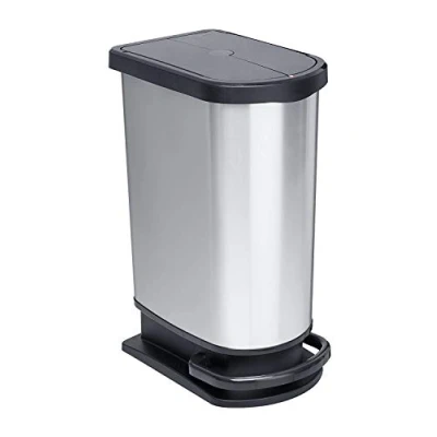 Convenience: Thanks to its slim shape, the bucket is easy to store and fits perfectly into niches, the pedal mechanism allows easy opening and silent closing, with a device for 2 garbage bags Hygiene: trash can with perfect odour removal allows unpleasant odours to disappear and is easy to clean thanks to its material and smooth inner surface, no fingerprints Features: Waste bin made of high-quality plastic with real metal coating - no rusting or bulging, metal device for clamping and extra inner ring to cover two garbage bags Dimensions: approx. 44x29x67 cm (LxWxH), volume: 2x 25l, colour: body silver, lid black Box contents: 1x high-quality BPA-free waste bin 2x 25 l including step function and odour-proof lid - stylish waste separation - made in Switzerland