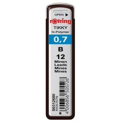 rOtring Lead Refills Hi Polymer for Fine Mechanical Pencils 0.70mm B (12 Leads)