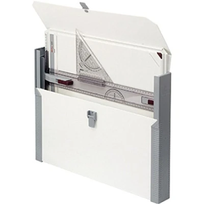 AmazonRobust board of unbreakable, non-warping material for durability Parallel straight edge with Stop-and-Go locking mechanism Guide rails, compass plotting, rapid set square and media markings designed for aiding in accuracy Rigid case features guides to hold the drawing board securely Case has extra space for books and utensils