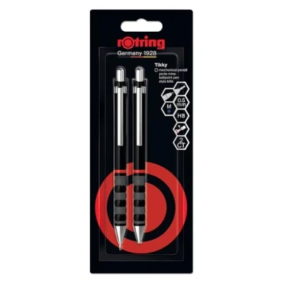 Rotring Tikky Mechanical Pencil & Ballpoint Set HB Lead, 0.5 mm Medium Point Pen Black Barrel Lightweight with Rubberised Grip