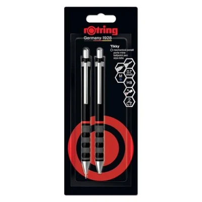Rotring Tikky Mechanical Pencil & Ballpoint Set HB Lead, 0.7 mm Medium Point Pen Black Barrel Lightweight with Rubberised Grip
