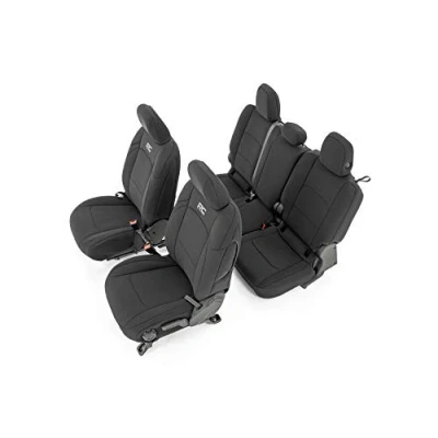 Rough Country Neoprene Seat Covers for 2020 2022 Jeep Gladiator JT 91034, Front/Rear, Black