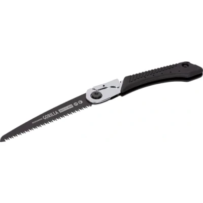 General description The Roughneck Gorilla Fast Cut Folding Pruning Saw is designed for exceptional cutting performance, featuring impulse-hardened, triple ground teeth and a PTFE low friction coating. Its chrome plated steel chassis enhances strength and durability, while the blade securely locks in place and folds away safely when not in use. The saw is equipped with a non-slip rubber handle for a secure and comfortable grip, even in wet conditions. It comes with a fabric sheath for safe transportation and storage, and replacement blades are available (ROU66806). Technical specifications Blade Length: 180mm Teeth: 7 TPI Type: Pruning Saw Other information