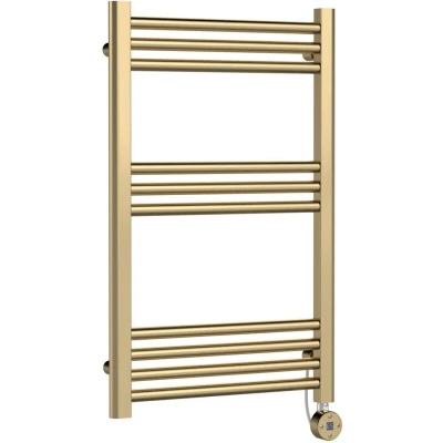Round Bar Electric Heated Towel Rail 800mm h x 500mm w Brushed Brass Nuie