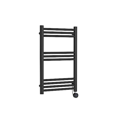 General description Designed to keep your towels warm and add charm to your bathroom, Nuie's round tube electric ladder rail offers a size and shade for every interior. This stylish ladder towel rail features round horizontal bars and a straight profile, making it a perfect addition to any modern bathroom. Technical specifications Towel Rail Height: 800mm Towel Rail Width: 500mm Wall to Front: 76mm Wall to Pipe Centres: 61mm Tube Quantity: 10 Total Gaps: 2 Tube Diameter: 22mm Output (Watts): 360 Output (BTU): 1280 Weight: 9 Kg Material: Steel Colour: Anthracite Mounting: Wall Orientation: Vertical Heating Element Type: Thermostatic IP Rating: IP64 Compatibility and accessories Includes wall brackets and fittings Installation Electric-only installation - does not require a connection to a central heating system Pre-filled with electrical inhibitor solution for ease of installation Extra care must be taken during installation to avoid damaging the fittings Usage Fitted with a