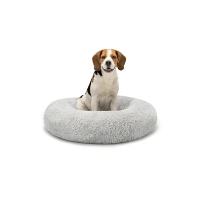 Round dog bed sofa donut cat pet cushion Ø 80 cm outer diameter light grey