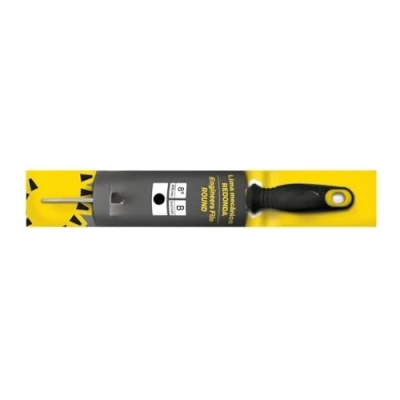 Achieve a perfect finish with this round file. [Bi-material handle] and [hanger] for comfort and (ideal for mechanical work). [Round file] with [bi-material handle] and [hanger], ideal for [smoothing] and [shaping] in mechanical work (compact size). Round file with bi-material handle and hanger, [ideal for straightening] and shaping. [Ease of use]: **Simple installation** (ready in minutes). Round file [bi-material] with [ergonomic handle] and [hanger]. [Ideal] for smoothing and shaping in mechanical work, [Safe and Durable]. Applications: Perfect in [mechanical workshops] and [households]. Ideal for [straightening] and [shaping] (bi-material handle makes it easy to use)., Manufacturer: Prendeluz S.L.