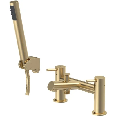 General description Bring style and function to your bathroom with the Round Minimalist Bath Shower Mixer Tap with Shower Kit in Brushed Brass by Balterley. This tap features a contemporary design, making it ideal for any modern bathroom. With a sleek and stylish appearance, it serves as an eye-catching addition to your space. The lever handle is both functional and stylish, providing precise control over water flow and temperature. Technical specifications Dimensions: 156mm (D) x 119mm (H) x 228mm (W) Material: High-grade brass internals Finish: Brushed Brass Usage Designed for practicality, the wide spout ensures an even and smooth flow, making it perfect for filling your bath with ease. Other information Warranty: Backed by a robust 3 years Guarantee for peace of mind and long-term reliability. Coordinating brassware and matching baths and screens are available from Balterley for a cohesive bathroom design.
