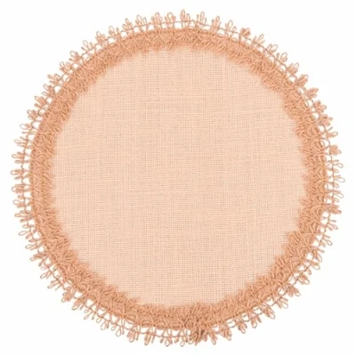 Round placemat made of 100% jute. Embroidered border. Natural design. Dimensions: Ø 38 x h. 0.3 cm Wipe with a damp cloth Colour: beige with brown border Round placemat, made from 100% jute Embroidered edge; Natural design Dimensions: Ø 38 x H 0.3cm; Wipe with a damp cloth Colour: beige with brown edge;