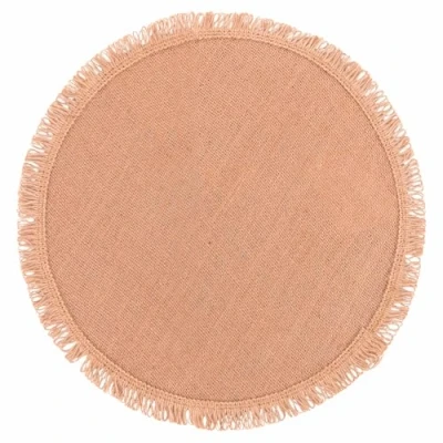 Round Placemat 38cm Jute Embroidered Border with Fringes