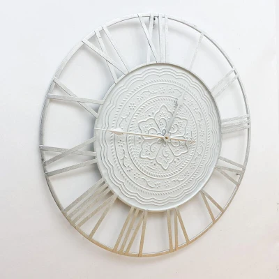 ManoManoGeneral description Sit and watch the time fly by with this stunning wall clock. Technical specifications Dimensions: L2 x W70 x H70 cm Weight: 3 kg Requires 1 AA battery