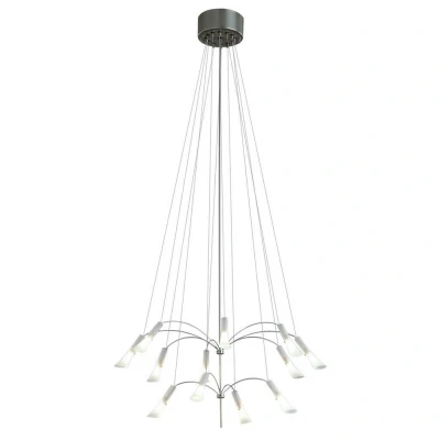 The Roundabout 12 Light Pendant Ceiling Light in satin nickel is an exquisite piece that provides ample illumination. Its stunning design makes it a perfect centerpiece for modern interiors.