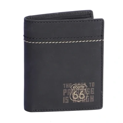 Route 66 Men's Leather Wallet (RFID Protection) Slim Design Card Holder for Men Wallets and Holders, Black, Medium