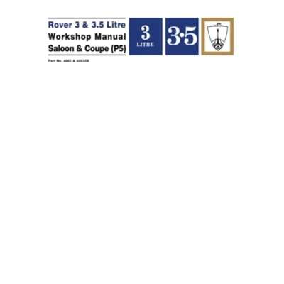 Rover 3 & 3.5 Litre Workshop Manual Saloon Coupe (P5): Part No. 4661 606358.