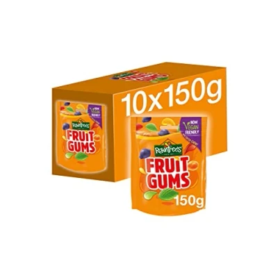 BURSTING WITH FLAVOUR: Bite into a fruit gum and release a burst of fruity flavour that lasts until the end FRUITY FLAVOURED: Enjoy a variety of fruit-shaped flavoured gums including blackcurrant, lemon, strawberry, lime, and orange. Delight in every bite! EVERYONE CAN ENJOY: Our vegan-friendly sweets offer extra delight in every Rowntree’s Fruit Gums bag, with diverse flavours, textures, shapes, and colours to enjoy CHEWY SWEETS TO SHARE: A selection of fruity flavours and textures makes this bag fun for family and friends NO NASTIES: Indulge in our vegan-friendly sweets, bursting with real fruit juice and free from artificial colours, flavours, or preservatives