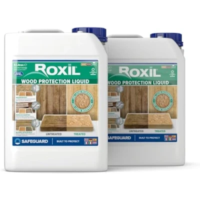 Roxil Wood Waterproofing Liquid (2x5L Clear) 10 Year Preserver Outdoor, Sealer for decking, Fence, Sheds and Furniture