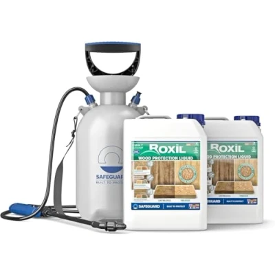 Roxil Wood Waterproofing Liquid (2x5L & Sprayer Clear) 10 Year Preserver Outdoor, Sealer for decking, Fence, Sheds and Furniture