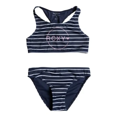 Roxy Bico Basic Stripe Crop Top Two Piece Bikini Set For Girls 6 16