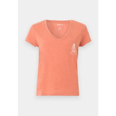 Roxy Laguna V NECK Print Tshirt apricot Sale at Zalando UK | Outer fabric material: 65% polyester, 35% viscose | Sale order at Zalando UK! Size: XS. Color: Apricot. Pattern: print.