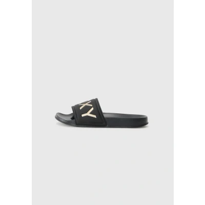 Roxy Slippy Pool slides black/goldcoloured Sale at Zalando UK | Upper material: highquality imitation leather/Lining: textile/Sole: synthetics/Insole: synthetics | Sale order at Zalando UK! Size: 7. Color: Black/gold/coloured. Pattern: print.