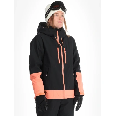 Roxy Upwards insulated ski jacket women is an insulated ski jacket designed for skiing and winter activity. Its waterproof rating of 20,000 mmH2O and breathability of 15,000 g/m²/24h keep moisture out while allowing perspiration to escape, so the jacket performs well during aerobic days on the piste or when moving between lifts. The shell is a 2 layer construction in recycled polyester, treated with a PFC-free durable water repellent finish. The outer fabric is breathable, waterproof and windproof, offering reliable protection in mixed winter conditions without excessive bulk. Practical details aim at slope use. A fixed, adjustable hood and a high collar combine with a zip featuring a chin protector for comfort and extra weather sealing. Storage includes a ski-pass pocket and a vertical chest pocket, both positioned for easy access while wearing gloves. The regular fit allows comfortable layering under the jacket. Overall the Roxy Upwards insulated ski jacket women balances thermal protection and ventilation for all-day wear on the mountain, with durable, environmentally considered materials and ski-specific features for functional use.