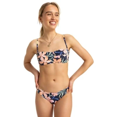 Roxy Women's INTO The Sun Bandeau Set Swimwear, Mood Indigo in Full Moon, S