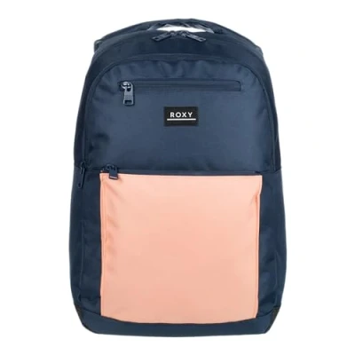 Medium backpack colour block, plain and printed. 24L 100% recycled polyester. For printed colours: due to the printing technique used, each piece is unique and therefore may differ from the picture. Compartments/Closure: 3 main zipped compartments. Padded pocket for 15 inch computer pocket on the front 2 side pockets made of mesh SHOULDER STRAPS / SHOULDERS: Adjustable padded shoulder straps. Reinforcement: rubber reinforcement on the underside. Roxy patch made of cotton. Dimensions: 46 [h] x 31 [l] x 16.5 [p] cm