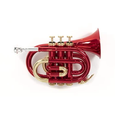 Yellow brass bell, Gold brass leadpipe Stainless steel pistons, Top spring action Two point nylon valve guides, Thumb ring on 3rd valve slide 2 water keys, Red lacquered finish Tuning and valve slides in clear lacquered finish, Light rectangular case