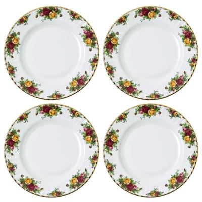 Royal Albert Old Country Roses 40034981 27cm Dinner Plates, Set of 4 White, Bone China, Multi