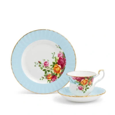 Old Country Roses are red but this colour is new⦠Introducing a brand new colourway to our iconic collection. This 3-piece set features a beautiful band of colour in bright Aqua, while the traditional Old Country Roses motif in burgundy, pink and yellow roses features in full bloom in the centre. All finished with our signature gold banding for a little everyday luxury. The new colourway fits seamlessly into your current Old Country Roses collection, letting you add a subtle pop of colour to any dining setting.
