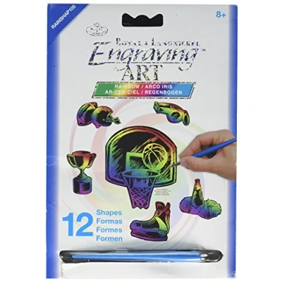 Artwork dimensions 5 inches x 7 inches (127 mm x 178 mm) Rainbow engraving art 12 en-gravable shapes, 1 scraper tool Sport designs