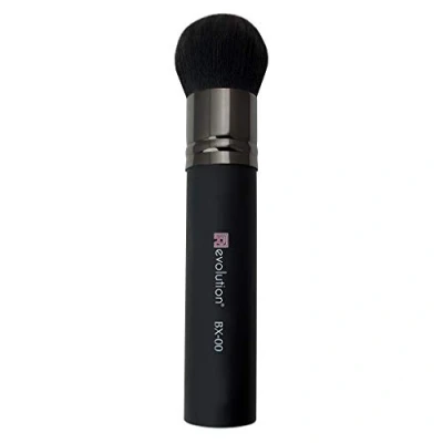R evolution a true revolution in cosmetic brushes from Royal & Langnickel^All R evolution cosmetic brushes are made from synthetic Natrafil fibers that mimic the performance and feel of the finest natural hair^Each Natrafil fiber features a micro studded surface, that allows for precise pick up, release and blending of even powder make-up^Soft touch matt black acrylic handle with a slight rubberized feel^This newly developed synthetic fiber does not shed or break like natural hair, cleans easier and dries faster^Developed and used by Emmy Award winning make-up artist Kevin James Bennett