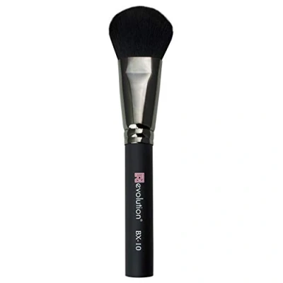 R evolution a true revolution in cosmetic brushes from Royal & Langnickel^All R evolution cosmetic brushes are made from synthetic Natrafil fibers that mimic the performance and feel of the finest natural hair^Each Natrafil fiber features a micro studded surface, that allows for precise pick up, release and blending of even powder make-up^Soft touch matt black acrylic handle with a slight rubberized feel^This newly developed synthetic fiber does not shed or break like natural hair, cleans easier and dries faster^Developed and used by Emmy Award winning make-up artist Kevin James Bennett