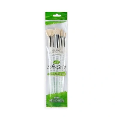Royal and Langnickel SG 505 Long Handle Soft Grip Bristle Variety Brush Set White (Pack of 5)