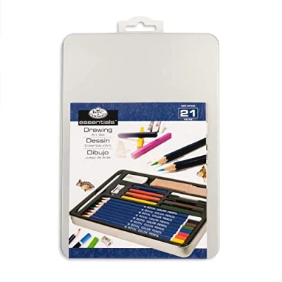 Still Life Drawing Tin Art Set is ideal for beginners, students and experienced artists Compact set, withall the necessary items needed Embossed silver tin with a hinged lid, measuring 215mm x 155mm x 20mm 19 products of a very high quality Royal & Langnickel is one of the main art brands within the UK