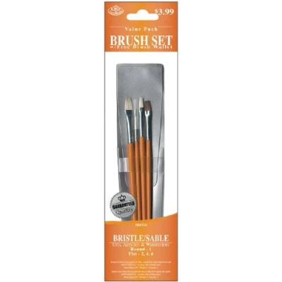 Royal and Langnickel Zip N' Close 4 Pieces Brush Set Bristle Flats 2, 4. Camel Round 1, Flat 6
