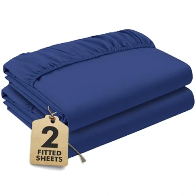 Royal Blue Fitted Sheet Single Beds (90x190 cm, Deep 35 cm) Pack of 2 Soft Microfibre Elasticated Cover Breathable, Durable & Easy Care Bottom