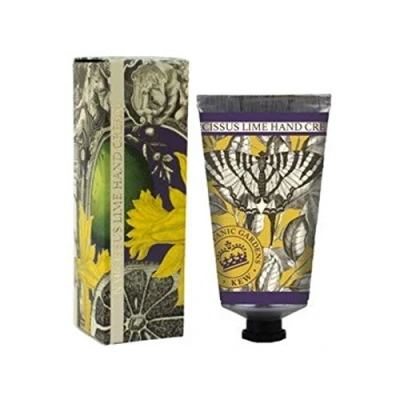 Kew Gardens Narcissus Lime 75ml hand cream Enriched with shea butter to nourish and moisturise all skin types Packaged in specially designed boxes and tubes, complete with beautiful images from Kew Garden’s historic archives. ot tested on animals and free from parabens, SLS and SLES. Contains Beeswax Made in England, in the heart of the countryside