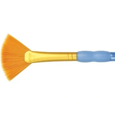 Crafters Choice Gold Taklon Fan Brush size 0 -The durable polymer handles feature a soft rubber grip for extra comfort while painting. 3 pack of same brush CLR9850-0 CLR9850-0 MPN R9850-0
