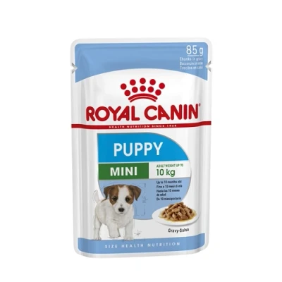 Your puppy’s growth period is an important life stage; it’s the time of discovery and change. While your puppy is still growing, it’s important that its diet supports optimal health. Suitable for puppies aged up to 10 months that will have an adult weight of up to 10kg, ROYAL CANIN® Mini Puppy in Gravy is specially formulated with all the nutritional needs of your mini puppy in mind. ROYAL CANIN® Mini Puppy in Gravy contains an exclusive complex of antioxidants – including vitamin E – to support its juvenile immune system while it’s still maturing. ROYAL CANIN® Mini Puppy in Gravy also contains many beneficial nutrients that help to support your puppy’s general digestive health. What’s more, the intense energy content in ROYAL CANIN® Mini Puppy in Gravy will meet the high energy needs of your small breed puppy. To cater to each dog’s individual preferences, ROYAL CANIN® Mini Puppy is also available as dry food, with crunchy and tasty kibble. If you’re considering mixed feeding, simply follow our feeding guidelines to ensure your dog gets an accurate amount of both wet and dry food for optimal benefit.Soft Texture For Baby TeethChunks designed with a size and soft texture for your puppy’s baby teeth.Immune System SupportContains nutrients, including vitamins C and E, to help support the puppy's natural defences.Brain DevelopmentEnriched with an omega-3 fatty acid (DHA) to support the puppy's brain development.Small breed puppies grow very fast. During their intense growth period, they need enough calories and the right nutrients to grow healthily. This is a time when your puppy’s bones, muscles, senses and nervous system are developing. It’s also the period when the antibodies your puppy got from their mother’s colostrum weaken, meaning they need optimal protein to build their own immune system. ROYAL CANIN® Mini Puppy in Gravy is specially formulated to support the nutritional needs of small breed puppies. This formula is suitable for 2 to 10-month-old puppies that should reach an adult weight of 4-10 kg. This tailored diet contains appetising chunks in gravy, designed with a size, texture and taste that’s perfect for small breed, growing puppies. This formula contains nutrients such as vitamins C and E to help support the puppies’ natural defences while their immune systems are still developing. The formula is also enriched with omega-3 fatty acids (such as DHA) to help support healthy brain development in puppies. Thanks to a combination of beneficial prebiotics and highly digestible proteins, ROYAL CANIN® Mini Puppy in Gravy also helps to support a healthy balance of intestinal microbiota (gut flora) for good digestion. ROYAL CANIN® Mini Puppy in Gravy has been created to satisfy the most delicate canine palate. This wet food offers your puppy a positive sensory experience, supports healthy hydration and is perfect for mixed feeding with the ROYAL CANIN® Mini Puppy dry kibble diet. Did you know that a puppy’s nutritional needs change as they grow? By the time your puppy reaches 10 months old, they will need a diet that’s specially adapted to meet their nutritional needs as a grown dog. At this stage, you can transition them onto ROYAL CANIN® Mini Adult, available either as a dry kibble diet or with wet chunks in gravy. At Royal Canin, we’re committed to creating a better world for cats and dogs. For more than 50 years, we’ve worked closely with breeders, vets, and pet experts, sharing specialist knowledge and scientific research to create a dedicated approach to individualised, precise nutritional solutions. All of our products undergo an extensive quality control process to guarantee the optimal quality of food. When your small breed puppy eats ROYAL CANIN® Mini Puppy in Gravy, they’re getting a complete and balanced diet.Additives: Vitamin D3: 140 IU, Iron (3b103): 5 mg, Iodine (3b202): 0.3 mg, Copper (3b405, 3b406): 2.4 mg, Manganese (3b502, 3b503, 3b504): 1.5 mg, Zinc (3b603, 3b605, 3b606): 15 mg - Technological additives: Clinoptilolite of sedimentary origin: 2 g.Compostion: Composition: Meat and animal derivatives, oils and fats, cereals, derivatives of vegetable origin, minerals, yeasts. Crude ash: 1.9%. Crude fibre: 1%. Crude oil fats: 6%. Moisture: 79.2%. Protein: 8%.Helps support your puppy’s natural defences thanks particularly to a complex of antioxidants including vitamin E.Immune System SupportHelps support your puppy’s natural defences thanks particularly to a complex of antioxidants including vitamin E.Digestive HealthSupports digestive health and balance of intestinal flora.Intense Energy ContentMeets the energy needs of small breeds puppies.AdditivesVittamin D3:150 IU, E1 (Iron): 6.5mg, E2 (Iodine): 0.2mg, E4 (copper): 1.7 mg E5 (Manganese): 2mg, E6 (Zinc): 20mg.CompostionMeat and animal derivatives, cereals, oils and fats, derivatives of vegetable origin, minerals and various sugars. Crude ash: 2%. Crude fibre: 1%. Crude oil fats: 6%. Moisture: 81%. Protein: 8%.Technical Specification:Product Type: WetProduct Species: DogProduct Lifestage: PuppyTarget Age From (months): 2Target Age To (months): 10Target Size From (kg): 4Target Size To (kg): 8Dimensions: Length: 195mm x Height: 145mmWeight: 0.085Kg